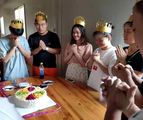 到下午3點,大家戀戀不舍地上岸返回景區(qū)休整地,團隊漂流結(jié)束,一個個沖洗整理好,進入休息區(qū)。迎著生日歌緩緩而來的是插滿蠟燭的蛋糕,公司為上半年生日的員工準(zhǔn)備了生日蛋糕,大家一起唱了生日歌,切蛋糕,員工們感謝公司的精心安排,感受到了大家庭的溫暖。