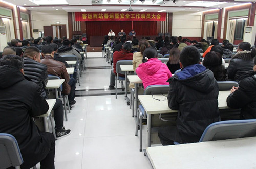 為順利完成2014年春運(yùn)工作,確保各項(xiàng)作業(yè)規(guī)范高效進(jìn)行,1月14日,客運(yùn)西站召集全體員工召開(kāi)了2014年春運(yùn)動(dòng)員會(huì)議。