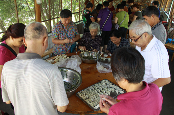 此次活動(dòng)共有120多名體協(xié)會(huì)員參加,大家都想借此機(jī)會(huì)和大自然來(lái)個(gè)親密接觸,體協(xié)委員利用休息時(shí)間為大家采購(gòu)了豐富美味的食物。利用新世紀(jì)綠草地依山伴水的地理資源優(yōu)勢(shì),在秋日和煦的陽(yáng)光下,在風(fēng)景秀麗的南明湖邊,我們老年人在綠草地上展現(xiàn)了 “年輕人”舞步,跳著佳木斯健身操動(dòng)作,擺動(dòng)雙臂,邁開(kāi)雙腳,走出健康,走出幸福。當(dāng)走進(jìn)餐廳看見(jiàn)桌子上擺好的餃子皮和餃子餡,老同志們便紛紛摩拳擦掌,躍躍欲試。他們各自分工后便熱火朝天的忙起來(lái),現(xiàn)場(chǎng)笑聲不斷。