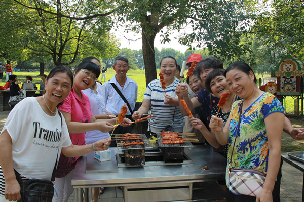 體現(xiàn)了“動(dòng)手包餃子,溫馨樂(lè)無(wú)窮”的氛圍。另一組又支起烤爐,只見(jiàn)大家爭(zhēng)先恐后、分工明確,充分發(fā)揮團(tuán)隊(duì)協(xié)作的精神,一串串食物在他們默契的配合下變成一串串美味佳肴,忙得不亦樂(lè)乎!大家展示了不同的燒烤方法和技藝,一時(shí)間炊煙繚繞、美味飄香,大家吃著自己親手烤出的各種食品,聊著自己在退休后生活中遇到的各種趣事,其樂(lè)融融,歡聲笑語(yǔ)隨著縷縷炊煙縈繞在空中。在享受美食的同時(shí)我們一邊欣賞南明湖的美景,真正達(dá)到人和自然的和諧統(tǒng)一。使退休職工享受到一份放松的心情。同時(shí)增進(jìn)了老同志之間的感情,為業(yè)余生活增色添彩。