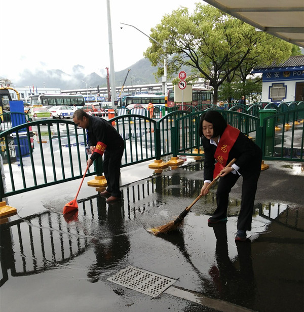 由于連日的陰雨,高鐵站發(fā)車區(qū)域地勢比周邊地勢低洼,有的地方積水嚴重,旅客上車非常的不方便。 為給旅客提供干凈整潔的環(huán)境,高鐵站工作人員利用發(fā)車空閑時間,及時清掃發(fā)車區(qū)域的積水,讓旅客來得開心,走得順心,身體力行實踐流動之家“將需要給我,把滿意給您”的服務宗旨。