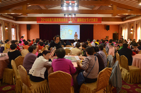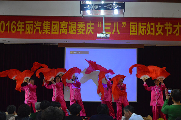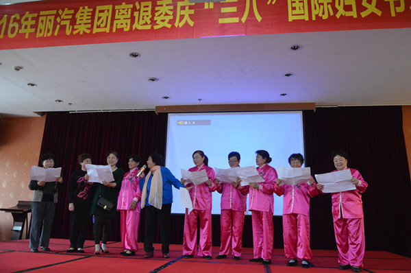 為慶祝第106個國際婦女節(jié),展示離退休女職工的風(fēng)采,今天上午,麗汽集團(tuán)離退委在八一賓館舉行慶“三八”國際婦女節(jié)才藝展示活動,260余名離退休女職工表演了扇子舞、排舞、詩朗誦、太極表演、獨唱、合唱、腰鼓、三句半等節(jié)目,既展示了離退休職工的精神風(fēng)貌,也展示了他們豐富多彩的退休生活。全體人員起立合唱的一曲《革命人永遠(yuǎn)是年輕》將活動推向了高潮。