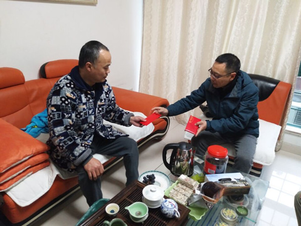 “我們全家感謝公司領導和同事們的幫助”,3月24日,當葉榮明接過工會主席王斌遞過來的捐款時哽咽著說。