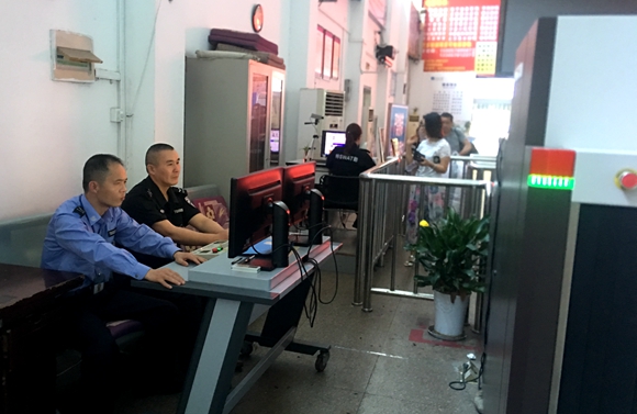 進站安檢崗位上,保衛(wèi)稽查科員們認(rèn)真甄別禁止攜帶進站的危險品和違禁品,為廣大乘客的生命財產(chǎn)安全筑起安全防線。