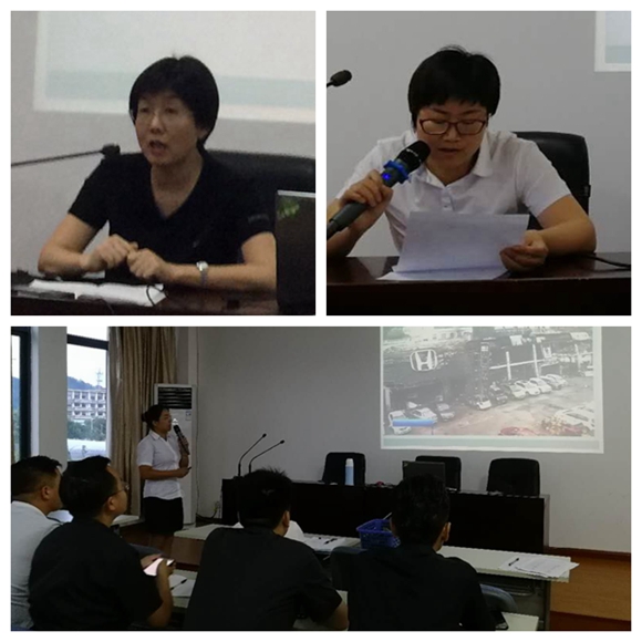 動員大會后,行綜合部經(jīng)理陳艷紅結(jié)合4S店的實際情況和目前在存在的一些安全短板問題,帶領(lǐng)與會人員重點學(xué)習(xí)了《新安全生產(chǎn)法》中有關(guān)從業(yè)人員的權(quán)利和職責(zé)、安全生產(chǎn)的重要性、常見事故發(fā)生原因及預(yù)防和處理,火災(zāi)形成的原因、急救及逃生方法等方面的內(nèi)容。