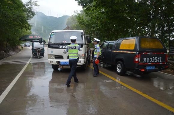 交警在危險(xiǎn)地段拉起警戒線