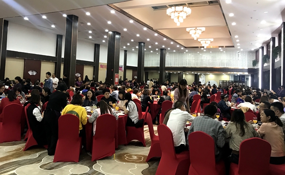 本次訂貨會是九城宴會中心第一次承接如此大型活動。用餐人數(shù)從原來預(yù)訂的600人增加到800人,全天不間斷12小時(shí)超長接待服務(wù),要求每天菜品不重樣等,在現(xiàn)有工作人員人手不足的情況下,對公司接待能力是個巨大考驗(yàn)。為了提供最優(yōu)質(zhì)的服務(wù),保證本次訂貨會圓滿完成,公司就此次活動多次召開了專題會議,人員合理分工、菜品科學(xué)調(diào)整、賣場結(jié)合促銷,為期3天的訂貨會終于圓滿地畫上了句號。