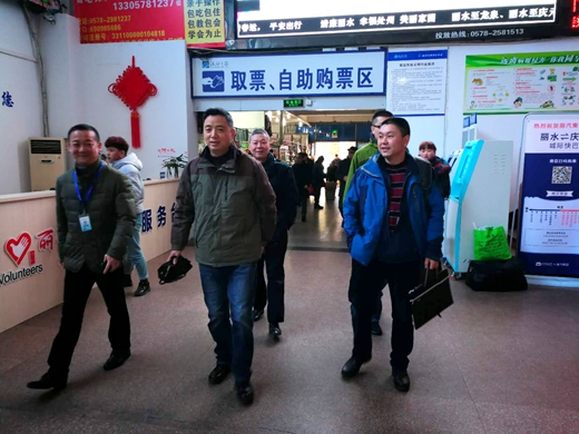 1月17日上午,市交通運輸局副局長葉利東等領(lǐng)導來客運東站督促春運各項措施的落實,檢查春運期間的安全生產(chǎn)等各項準備工作。長運(東站)經(jīng)理梁巍等陪同檢查。