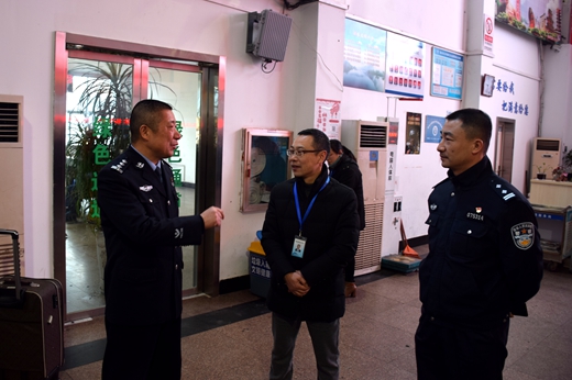 1月29日上午,蓮都區(qū)公安分局黨委副書記、政委尤曉劍到長運(yùn)(東站)檢查指導(dǎo)春運(yùn)安全工作,巡特警大隊(duì)長朱劍波、長運(yùn)(東站)副經(jīng)理王斌陪同檢查。