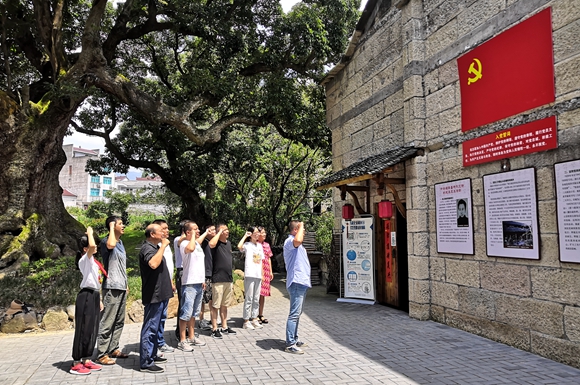 參觀古樹公園,有千年樹齡的苦櫧樹,其樹洞大到可容納五六人。這里就是1939年中共縉云縣委特別支部樹洞會(huì)議的遺址,正是這棵千年古樹珍藏了那段難忘的紅色記憶,聽著紅色故事,重溫著那段光輝的崢嶸歲月。