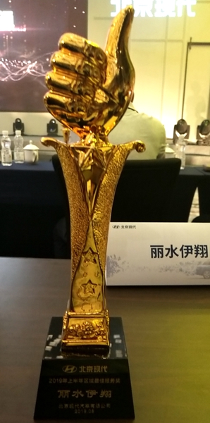 8月21日,在煙臺(tái)舉行的北京現(xiàn)代半年度經(jīng)銷商大會(huì)上,麗水伊翔榮獲“2019年上半年區(qū)域最佳服務(wù)獎(jiǎng)”。