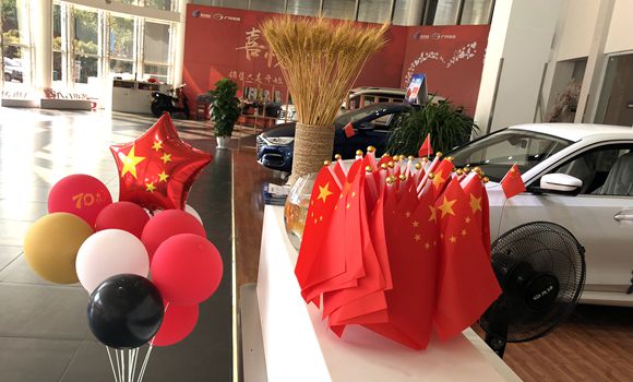 公司門口,大紅的橫幅寫出了恒翔人喜迎國慶的喜悅心情。銷售展廳里,新車上插滿了鮮艷的五星紅旗,銷售顧問們把寫有“愛我中國”的小紅旗貼到手上。售后接待處,也懸掛起了很多面迎風(fēng)招展的紅旗。一面面五星紅旗,寄托了恒翔人滿腔的愛國赤誠。鮮艷的旗幟映襯著恒翔員工的張張笑臉,也寫出了他們身為中國人的自豪!