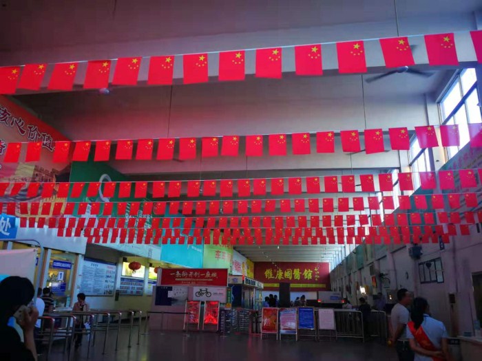 今年是中華人民共和國成立70周年,為團結動員廣大黨員干部和員工以極大熱情投身到車站的工作中,客運東站在候車廳、站場以懸掛國旗為主導,配合彩旗和燈籠、鮮花,營造莊嚴肅穆的國慶氛圍,讓出行的旅客感受到濃厚的節(jié)日氣氛。