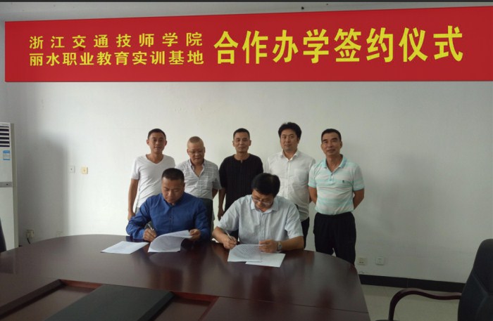 9月28日,實(shí)訓(xùn)基地與浙江交通技師學(xué)院舉行了第三輪校校合作辦學(xué)簽約儀式。浙江交通技師學(xué)院黨委書記、院長李忠躍,麗水市職業(yè)教育實(shí)訓(xùn)基地有限公司董事長王興平、總經(jīng)理麻向健等領(lǐng)導(dǎo)參加簽約儀式。