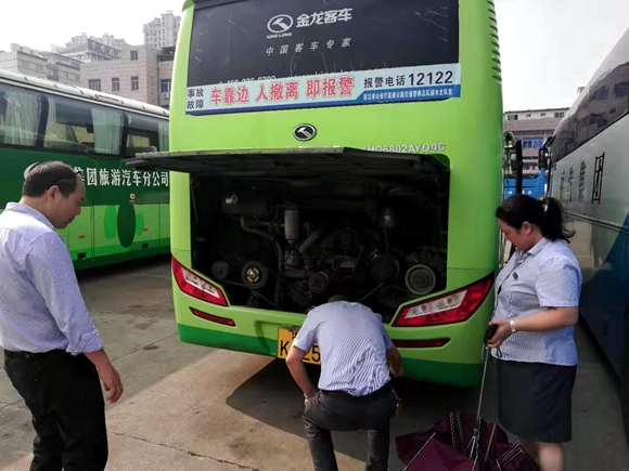 9月30日上午,旅游汽車分公司副經(jīng)理薛虹帶隊對東西兩站車輛進行全面細致的安全大檢查,不放過任何一個盲區(qū),不留一處死角。對于安全設備不符合規(guī)定的、設施設備不齊全的車輛,督促其進行安全檢修和更換,以保證車輛處于良好技術狀態(tài),確保節(jié)日期間旅客運輸服務優(yōu)質、安全、有序。