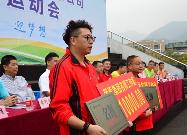 為貫徹落實全總十七大報告提出的關于加強勞模和工匠人才創(chuàng)新工作室創(chuàng)建的要求,進一步營造勞動光榮的企業(yè)風尚和精益求精的敬業(yè)風氣,今年4月,集團公司開始實施名師工作室創(chuàng)建工程。麗水市旅游集散中心和南明文化傳媒先后建立了由麗水市金牌導游朱勇華牽頭的朱勇華名師工作室,設計師華振凱牽頭的麗水市南明文化傳媒有限公司名師工作室。在運動會開幕式上,集團公司對已經符合條件的兩個名師工作室進行授牌。市總工會黨組成員、副主席程浙軍,市交通運輸局黨委委員、副調研員俞利清為他們授牌匾,并頒發(fā)啟動資金。
