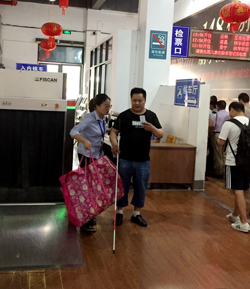 “我們就是您的眼睛啊,有我們?cè)?,您就安心吧!?br/> 11月4日下午,麗水高鐵站公路客運(yùn)上客點(diǎn)里,檢票的空檔,隔著窗戶,聽到如此暖心的一句話,我不禁抬頭尋聲望去??吹轿覀兊膶?dǎo)乘員劉遠(yuǎn)玲扶著一位男士,往候車室慢慢走進(jìn)來。仔細(xì)一看,是一位盲人旅客。劉遠(yuǎn)玲把旅客帶到了離檢票口最近的位置坐下,對(duì)旅客說:“先生,您坐在這里稍等下,售票窗口人多,怕擠著您,13點(diǎn)09的松陽車馬上就到了,把證件交給我,我?guī)湍哑辟I好?!庇洲D(zhuǎn)身對(duì)我交代了下:“等下檢票的時(shí)候怕是人會(huì)多,你注意下,別讓旁邊的人撞著這位同志。”