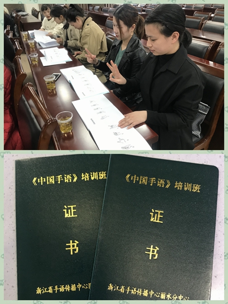 為了更好地服務(wù)特殊旅客,11月25日至27日,客運(yùn)東站派兩名代表參加麗水市窗口單位服務(wù)人員手語(yǔ)培訓(xùn)。本次培訓(xùn)活動(dòng)由市無(wú)障礙創(chuàng)建辦舉辦,培訓(xùn)內(nèi)容為手語(yǔ)理論知識(shí)、手語(yǔ)通用詞語(yǔ)、日常會(huì)話、手語(yǔ)歌、手語(yǔ)翻譯等。三天的培訓(xùn)結(jié)束經(jīng)考核合格,頒發(fā)結(jié)業(yè)證書(shū)。