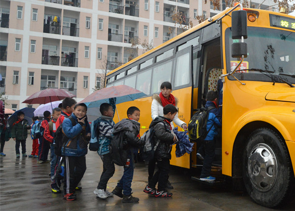 校車開(kāi)出碧湖二小(明德小學(xué))