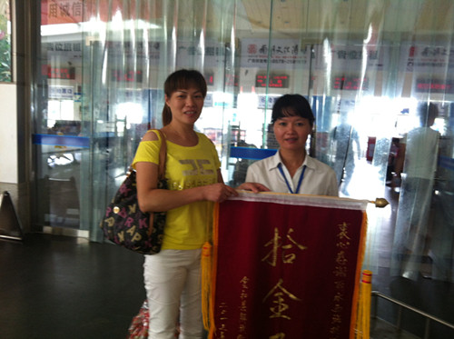 7月20日上午,客運西站值班室迎來一位特殊的客人。她執(zhí)意要找到客運西站行車員胡堅芬,將一面寫著“拾金不昧”的錦旗和一個水果籃交到胡堅芬手中,并再三表達了對胡堅芬的謝意。