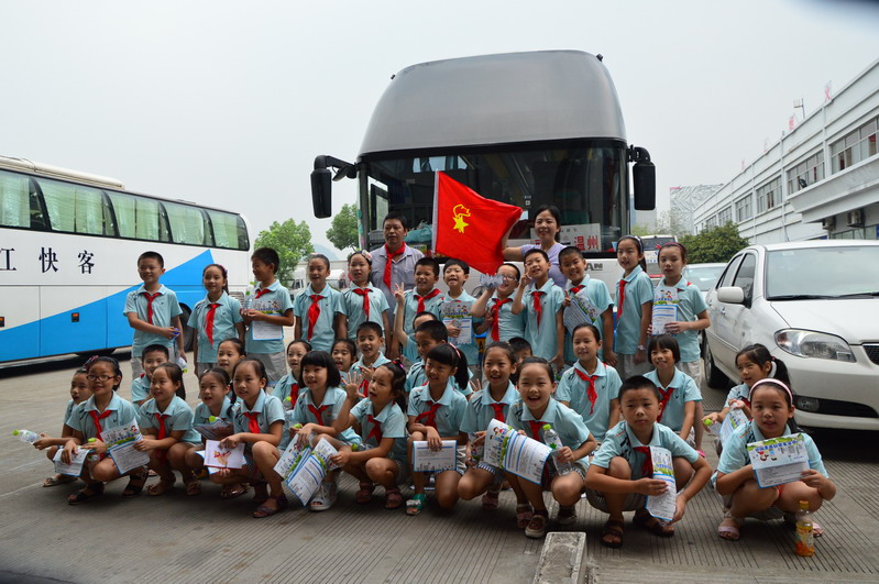 在客運(yùn)西站中廳里,面對模范司機(jī)吳斌的宣傳事跡圖片,小同學(xué)們不由的齊聲朗讀了起來,心里充滿了崇敬之情。在見到“最美浙江人”、“模范司機(jī)”吳斌后,小學(xué)生們更是高興的為吳斌叔叔戴上了紅領(lǐng)巾、獻(xiàn)上了美麗的鮮花。吳斌叔叔也親切的與小朋友們進(jìn)行了交談,并告訴他們出行一定要注意安全,要自覺遵守交通法規(guī)。