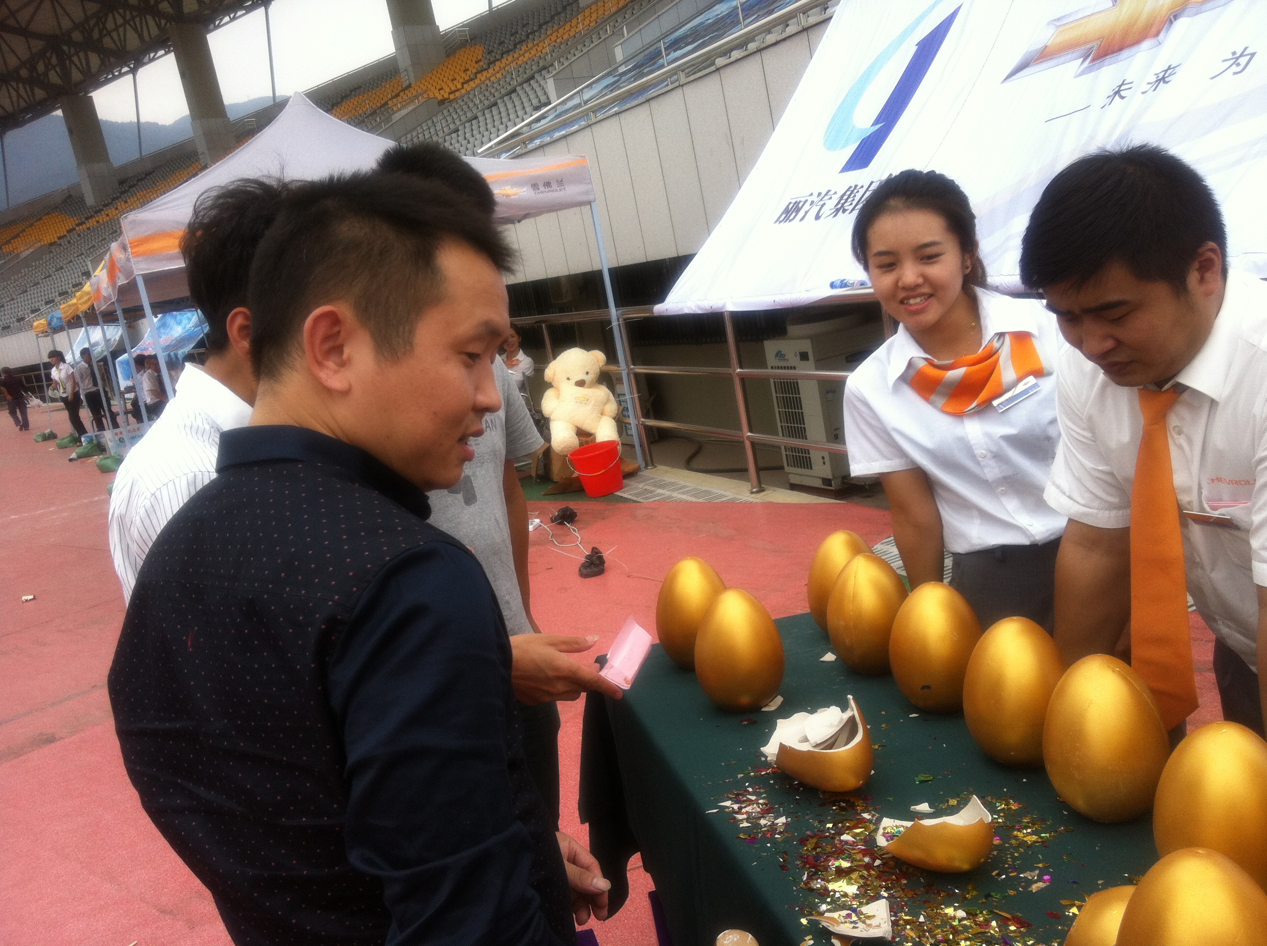 在9月26日-10月1日舉辦的“2013麗水市首屆現(xiàn)代生活博覽會(huì)--國(guó)慶汽車(chē)展”上,甌龍雪佛蘭創(chuàng)新銷(xiāo)售方式,以“購(gòu)車(chē)砸金蛋”、舉辦新車(chē)上市會(huì)和現(xiàn)場(chǎng)顧客互動(dòng)等活動(dòng)方式吸引顧客。展銷(xiāo)期間現(xiàn)場(chǎng)訂車(chē)數(shù)達(dá)到了50輛,使9月份整車(chē)銷(xiāo)售實(shí)現(xiàn)了74輛的成績(jī),環(huán)比增長(zhǎng)了21.31%,再創(chuàng)新高。