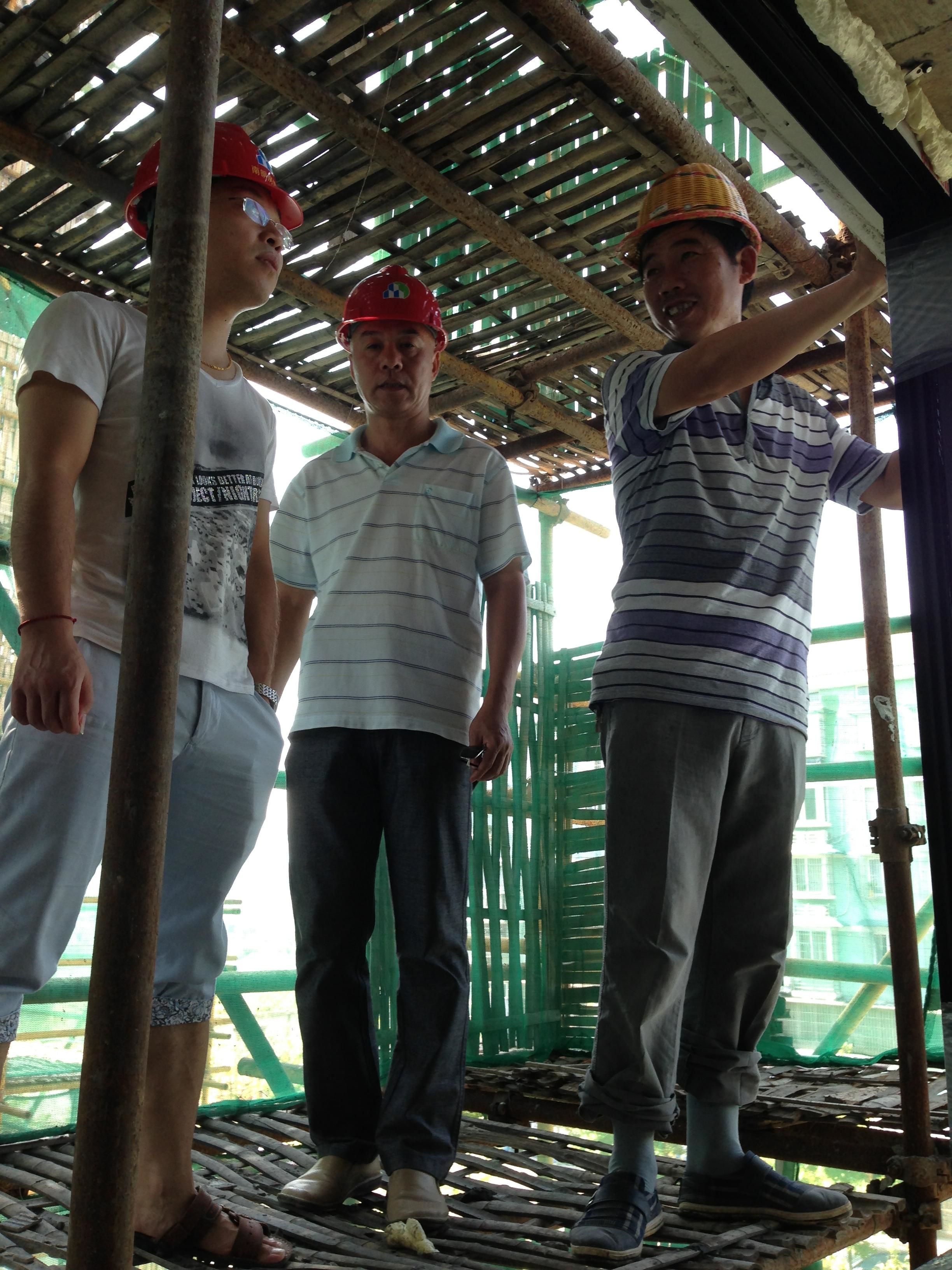 走進(jìn)施工現(xiàn)場(chǎng),大家沒(méi)有被高溫所嚇到,堅(jiān)守在自己的崗位上,兢兢業(yè)業(yè)地完成著各項(xiàng)任務(wù)。看!工程部員工正深入工地現(xiàn)場(chǎng)了解情況:檢查鋁合金門(mén)窗安裝是否符合要求;對(duì)防火門(mén)材料進(jìn)行記錄,對(duì)比質(zhì)量是否達(dá)標(biāo);對(duì)施工所需的鋼筋、水泥等材料的檢驗(yàn)以及重要部位和關(guān)健節(jié)點(diǎn)的施工,進(jìn)行監(jiān)督管理。站在太陽(yáng)底下,這痛苦的“桑拿天”讓員工們的衣服被汗水浸濕,嘴巴里就像有團(tuán)火,手剛抹掉額頭的汗,馬上就會(huì)流出來(lái),褲子上逐漸出現(xiàn)了“云彩”,原來(lái)那是汗?jié)n。為了工程項(xiàng)目能早日竣工交付使用,大家都沒(méi)有一句怨言,正以百分之二百的熱情投入這場(chǎng)“高溫持久仗”中。