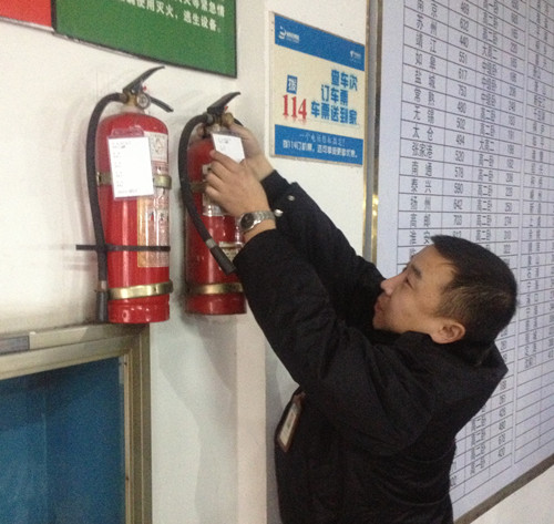 為加強消防設(shè)施的管理,及時有效的應(yīng)對突發(fā)事件的發(fā)生,切實保障元旦、春運工作的安全,近日,客運東站對全站消防設(shè)施進行了一次全面檢查并“掛牌”上崗,在每個消防設(shè)施上掛一張身份牌,注明編號,生產(chǎn)日期,以及每月檢查的時間和檢查人員姓名,層層落實責(zé)任,使每一名保衛(wèi)稽查人員通過安全責(zé)任的落實,牢固樹立安全責(zé)任重于泰山的思想,完善安全制度、消除隱患、為客運東站創(chuàng)建一個安全的生產(chǎn)環(huán)境。
