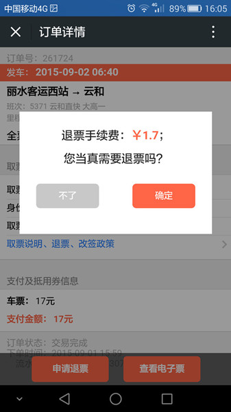 (6)微信還可以退票(手續(xù)費(fèi)與窗口退票相同)