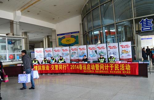 活動(dòng)現(xiàn)場設(shè)立了咨詢臺(tái),交警部門通過發(fā)放《駕駛?cè)舜哼\(yùn)安全手冊(cè)》、《兒童交通知識(shí)畫冊(cè)》、《駕駛?cè)伺嘤?xùn)教程》等交通安全書籍和宣傳畫冊(cè),向廣大旅客們進(jìn)行春運(yùn)交通安全宣傳。此外,還向旅客們派送印有道路安全溫馨提示的年歷、新春福字,為旅客送上新年的祝福和平安。