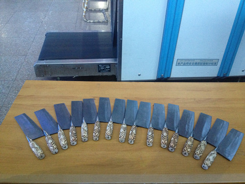 圖為春運(yùn)期間東站查獲的菜刀