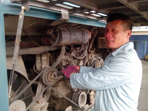 作為修理車間的一名修理工,潘瑞章同志在春運期間堅持早上班,晚下班,工作中不怕臟,不怕累。其所在的組有一輛跑嘉興的長途班車,每天跑來回,早上很早出車,晚上回來很晚,為了不影響次日發(fā)車班次,晚上不管車輛回來多晚他都會及時地把工作完成。