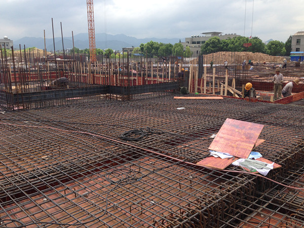 項目自2014年5月份正式動工以來,在各單位的大力支持配合下,兩個區(qū)塊施工全面展開,工程進度取得了階段性成果。工程部及監(jiān)理公司加大在質(zhì)量、安全、進度等過程控制,在每一道工序施工前,項目部技術(shù)人員都先對各施工班組就技術(shù)、質(zhì)量、安全進行書面交底,并嚴(yán)格按照交底進行檢查,發(fā)現(xiàn)不合格,立即整改;在施工中加強了 “三檢”,即自檢、互檢和交叉檢查,大大減少了因返工造成的材料損失,同時確保了工程質(zhì)量,促進了進度,取得了成果。目前,地下室底板已全部澆筑完成,地下室頂板已完成85%,預(yù)計8月中旬達(dá)到±0.000。