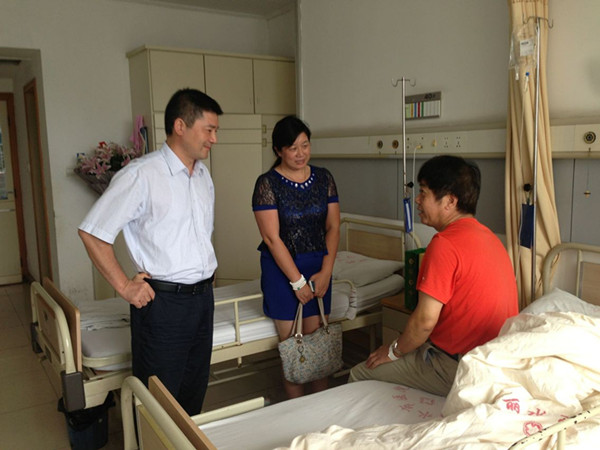 在抗災自救期間,東站業(yè)務站長何小勇在老毛病高血壓發(fā)病的情況下,還一直堅守崗位,直到所有車輛都撤離站場。他的病情一直牽掛著大家的心,8月26日,集團公司總經理薛和有和工會主席呂麗君專程到醫(yī)院看望慰問他,囑咐他安心治病,爭取早日康復。