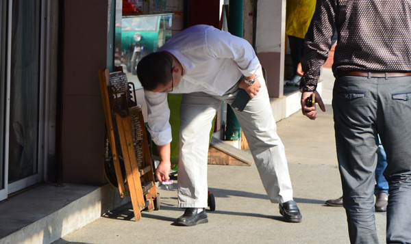 查看東站外面小店新裝的玻璃門