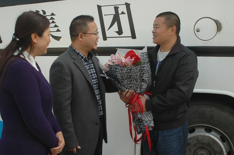 章雙林師傅接過(guò)鮮花,很靦腆的笑著說(shuō):“這沒(méi)什么,也是我的責(zé)任?!?/p>