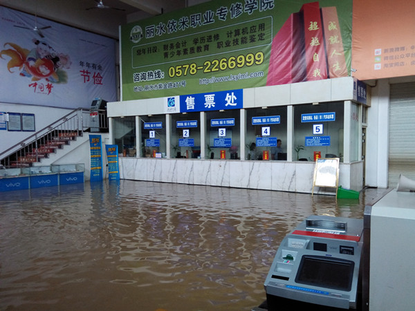 8月20日,麗水遭遇50年一遇大洪水,麗水客運(yùn)東站也遭遇了建站以來(lái)最大的洪水侵襲,站場(chǎng)、站房一片汪洋。下午4時(shí)許,我們深入東站,用相機(jī)真實(shí)地記錄了當(dāng)時(shí)東站的內(nèi)外情景。