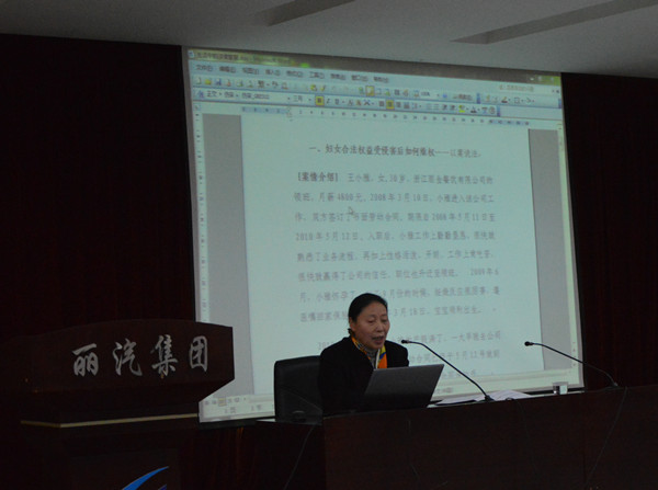 為慶祝“三?八”婦女節(jié),貫徹執(zhí)行浙工女職〔2015〕1號文件精神,并結(jié)合女職工維權(quán)活動月的要求,3月12日晚上,麗汽集團(tuán)舉辦了一場“麗汽集團(tuán)女職工法律宣傳與權(quán)益維護(hù)”法律講座,市人民檢察院檢察官楊素青就如何運用法律來維護(hù)女職工合法權(quán)益給大家進(jìn)行了深入淺出的介紹。