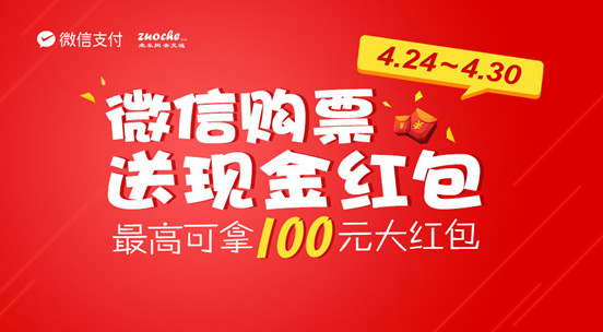 一大波五一福利!微信購(gòu)票馬上獲1-100元現(xiàn)金紅包!真錢任性!