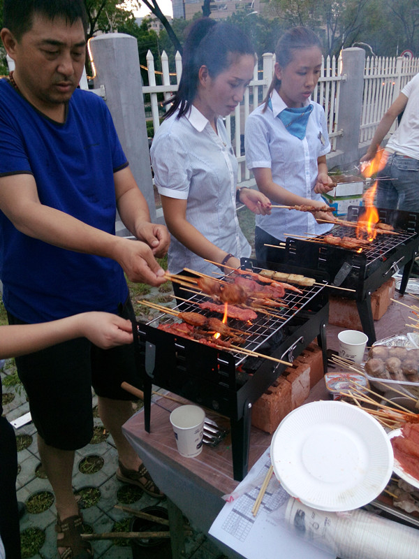 在大家的努力下,炭火終于燃燒起來了,燒烤也正式拉開了帷幕,同事們紛紛上場開始大顯身手,刷油、上烤架、刷調(diào)料,一陣陣香味引的路人紛紛駐足。有的同事技術(shù)高超,烤出來的食物色香味俱全,一出爐就被大家一掃而空,有的同事技術(shù)差了一點,烤出來的食物外焦里生,大家吃著自己親手烤出的各種食品,體驗了一把“自己動手豐衣足食”的樂趣。