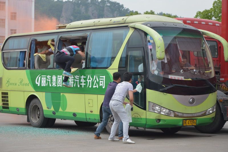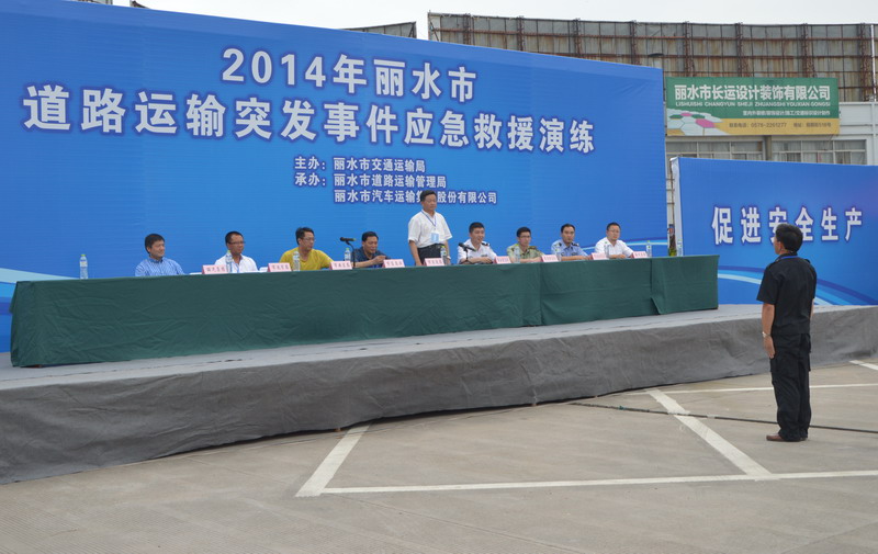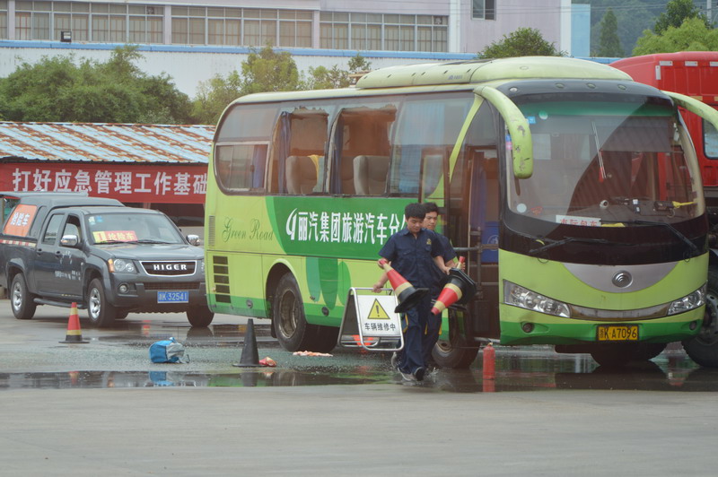 為了全面落實安全生產(chǎn)責(zé)任,檢驗評估麗水市突發(fā)事件應(yīng)急救援預(yù)案和應(yīng)急救援體系的適應(yīng)性、有效性,最大限度地減少各類突發(fā)事件的損失和負(fù)面影響,6月10日下午,麗水市交通運輸局聯(lián)合市道路運輸管理局和麗汽集團在客運西站組織開展了突發(fā)事件應(yīng)急救援演練。此次應(yīng)急救援演練共分2個科目,分別為:科目一交通事故(客車碰撞后起火燃燒)應(yīng)急處置和科目二“三防”應(yīng)急救援車輛調(diào)集演練。文首即為突發(fā)事件應(yīng)急救援演練中交通事故應(yīng)急處置中的一個場景,此次演練的另一個科目模擬市交通運輸局緊急調(diào)用麗汽集團應(yīng)急搶險運力展開。演練中,麗汽集團在接到市交通運輸局應(yīng)急搶險指令后,迅速啟動了應(yīng)急預(yù)案,并立即調(diào)派各單位應(yīng)急搶險車輛在規(guī)定時間內(nèi)到達指定區(qū)域待命。