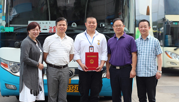 6月5日上午,麗水市總工會領(lǐng)導(dǎo)專程到麗汽集團(tuán)客長運(yùn)分公司,給“最美司機(jī)”章雙林送來麗水市勞動(dòng)模范獎(jiǎng)?wù)潞妥C書。