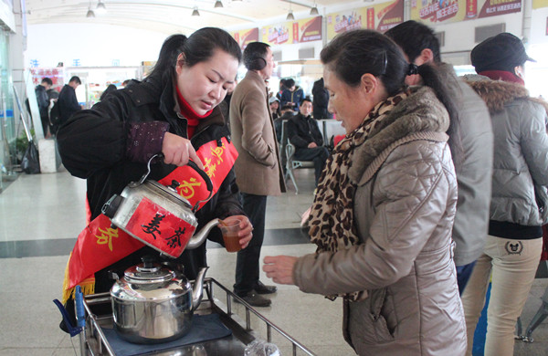 2月6日一大早,客運西站“流動之家”服務(wù)班的姐們早早就準備好一大壺?zé)狎v騰的姜茶,免費送到候車的旅客手上,希望熱騰騰的姜茶能驅(qū)散早晚的寒意,讓旅客回家的旅程變的更加溫暖。