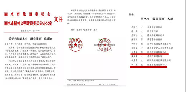 近日,麗水市旅游委員會、麗水市精神文明建設委員會辦公室發(fā)文表彰麗水市“最美導游”,集散中心朱勇華、李穎兩位導游被授予麗水市“最美導游”榮譽稱號。本次麗水市“最美導游”評選經群眾推薦、組織審核、媒體公示、綜合評定等程序,最終產生十名麗水市“最美導游”。