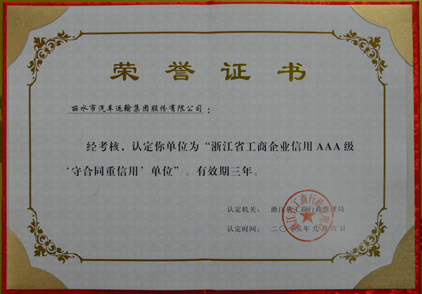 日前,麗汽集團被認定為浙江省工商企業(yè)信用3A級“守合同重信用”單位,有效期三年。11月13日上午,麗水市市場監(jiān)管局直屬分局監(jiān)管科科長吳乾水專程為公司送來“浙江省工商企業(yè)信用AAA級守合同重信用單位”的匾牌及榮譽證書,并對麗汽集團守合同重信用工作表示了充分的肯定。