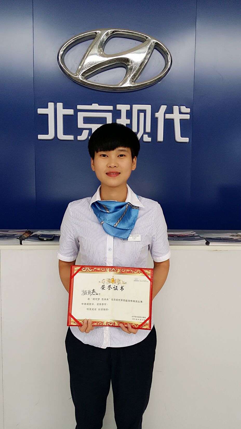2015年,游麗燕代表伊翔店參加閩浙區(qū)銷售比武大賽,她有憑借自己熟練的銷售知識,過五關(guān)斬六將,在眾多銷售顧問中脫穎而出,榮獲了“閩浙區(qū)銷售比武大賽季軍”的稱號。