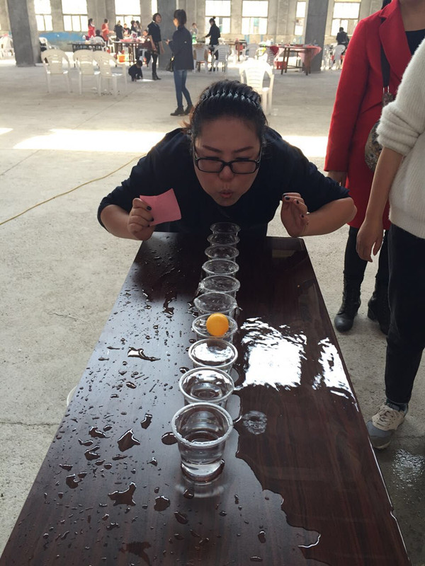 大家一起的說說笑笑的時光總是過的特別快,一會就到了中午時間,吃過午飯就正式開始游園活動。游園有四個項目,第一個吹蠟燭時,我深吸一口氣用力一吹,居然拿了10分。一個好的開頭給了我很大信心,沒想到第二個吹乒乓球的游戲卻把我難住了。十個杯子排成一排,由于我個子比較小,排在最后幾個杯子離我實在太遠了。這時裁判員告訴我一個訣竅,“不用要很大的力氣吹”,要先把杯子里的水都加滿,再對準乒乓球的底端吹,先輕后重。在裁判員的指導下,我又成功的拿了個10分。也許是前面兩游戲給我?guī)砗眠\,后面的夾乒乓球、穿越火線兩個游戲也取得了滿分的成績。
