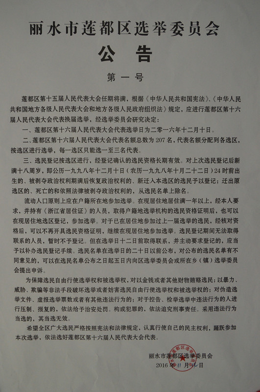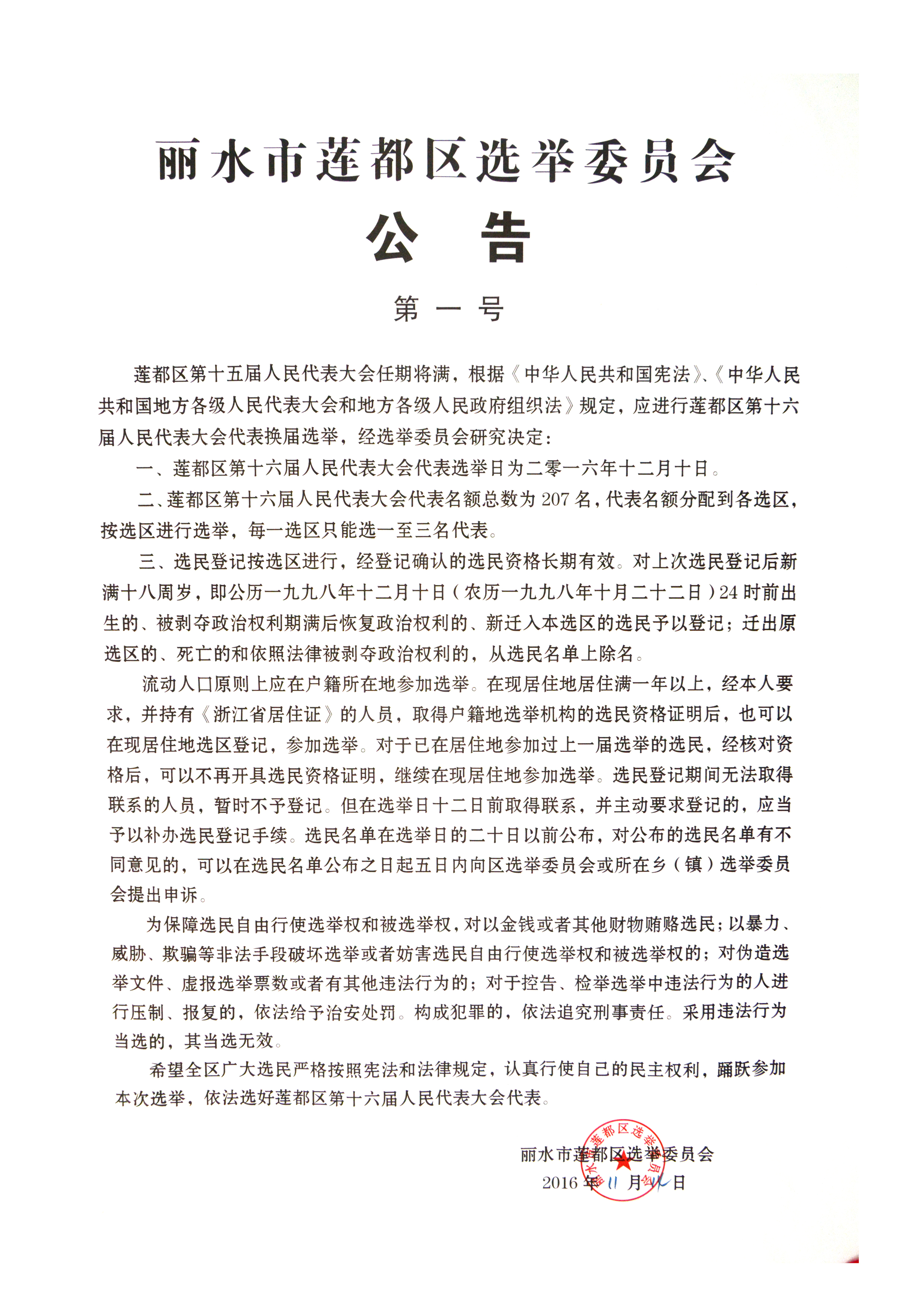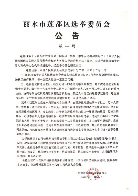 麗水市蓮都區(qū)選舉委員會(huì)公告(第四號)