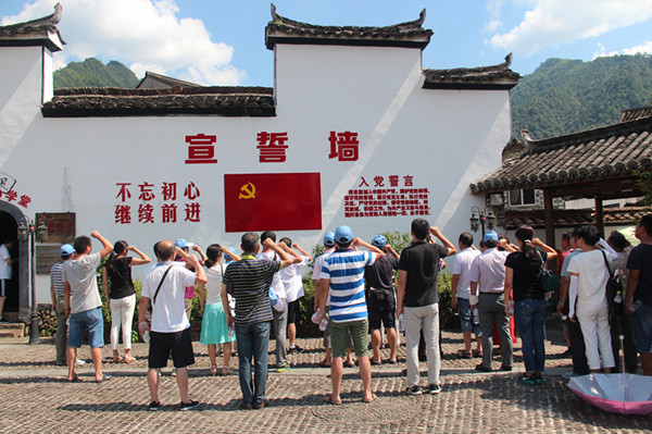 在有著“浙江井岡山”之稱的住龍鎮(zhèn),大家頂著火紅的驕陽重走住溪村紅軍街、參加紅軍學(xué)校的學(xué)習(xí)、參觀了紅色文化廣場和浙江最早建立的一個縣級蘇維埃政府,回顧了粟裕、劉英率領(lǐng)的中國工農(nóng)紅軍挺進(jìn)師開創(chuàng)浙西南革命根據(jù)地的紅色歷史。參加活動的黨員還在宣誓墻前莊嚴(yán)地舉手宣誓,再一次重溫入黨誓詞,接受了一次黨性洗禮。