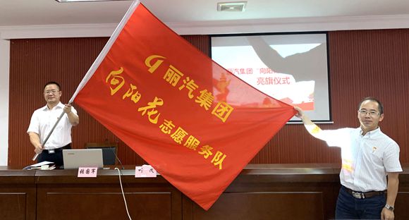 專題黨課后,還舉行了麗汽集團“向陽花”志愿服務隊亮旗儀式。經(jīng)過前期征名和討論,集團公司黨、政、工、團四條線的志愿服務隊合并定名為“向陽花”志愿服務隊,此舉將規(guī)范統(tǒng)一麗汽集團的志愿服務載體,使廣大黨團員和員工投身志愿服務的參與面更為廣泛。